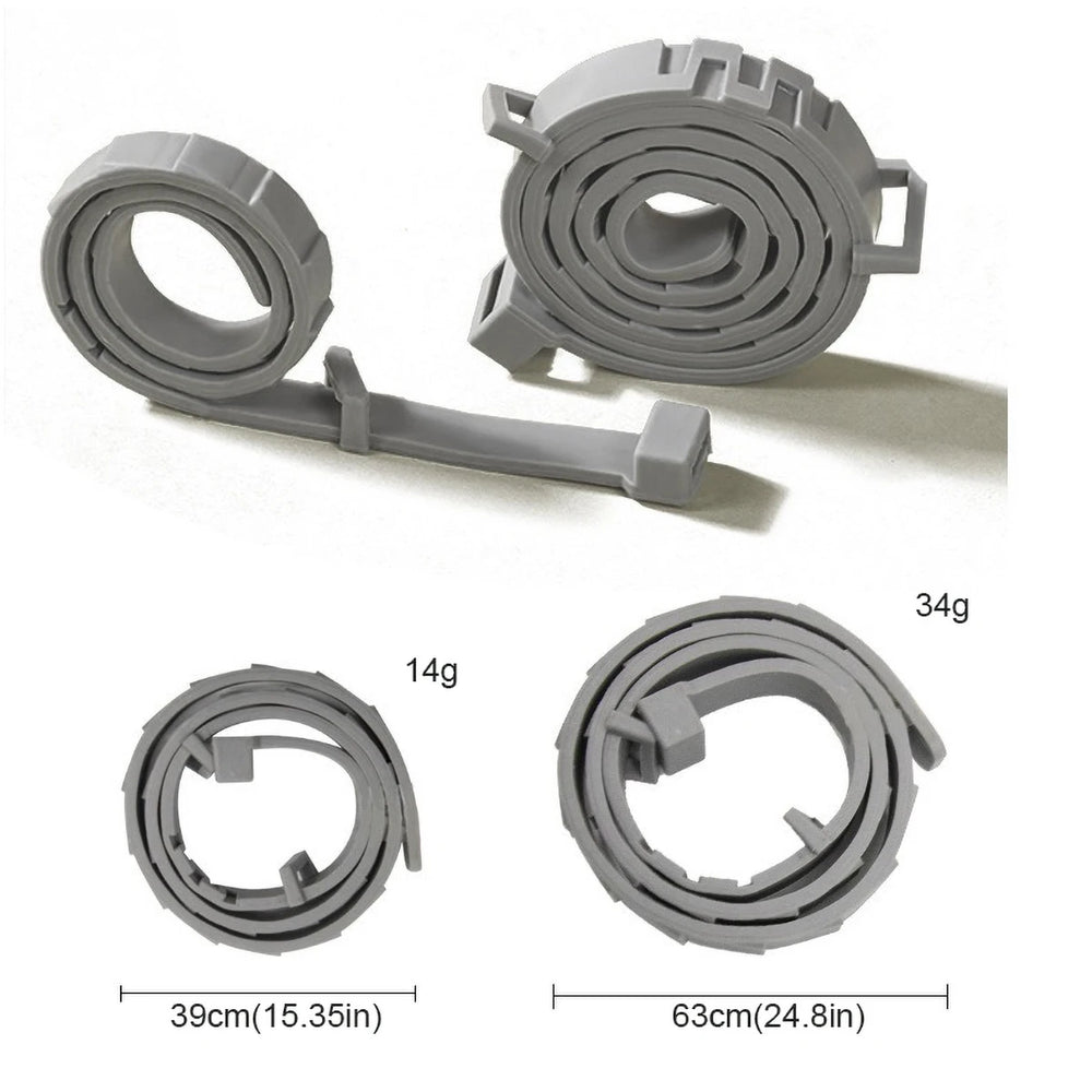 Answer 2: The collars are available in two sizes: 38cm for cats and 62cm for dogs. When putting it on your pet, leave a gap of 2-3 inches for future adjustments and comfort, then simply cut off any excess length for a custom fit.